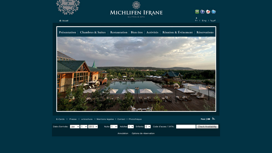 Site web de l’hôtel de Luxe Michelifen Ifrane avec réservation enligne.