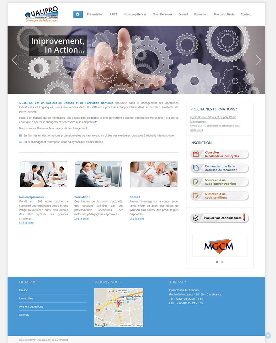 Site web dynamique, offre une autonomie totale, d'une manière très simple, pour la gestion et la mise à jour du contenu des pages du site web ceci grâce à un éditeur web à accès via votre interface d'administration.